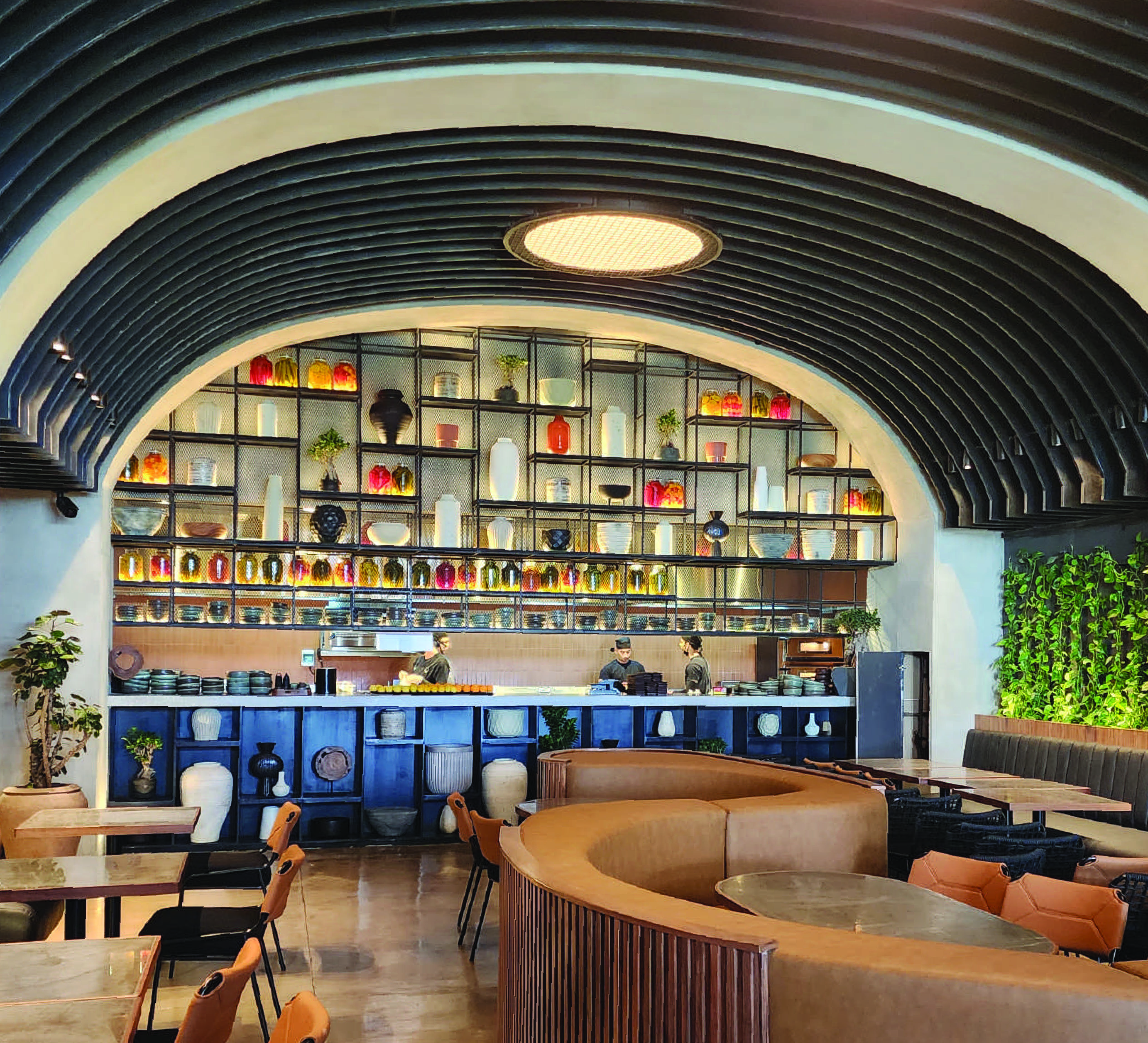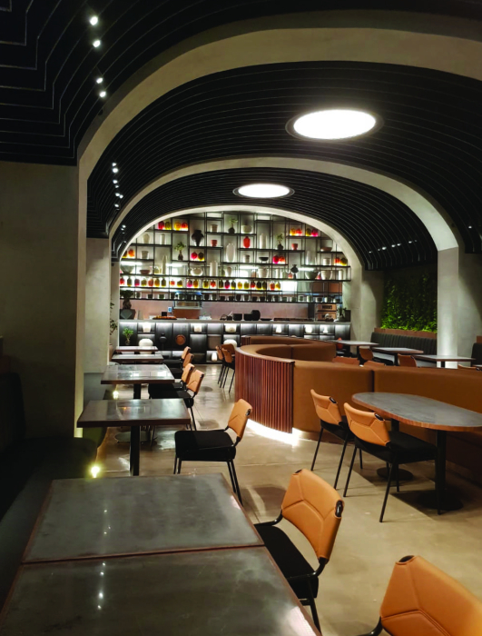 The elegant execution of Burger Boutique stands out in its illuminated steel elements. Indusial in its nature with hints of contemporary classical look & feel. Stunning with the focus being the custom made seating, curved in burnt leather along with the wood slats highlighted below with indirect light. Coming together with custom made seating, curved in burnt leather along with the wood slats highlighted below with indirect light. Coming together with custom made joinery.